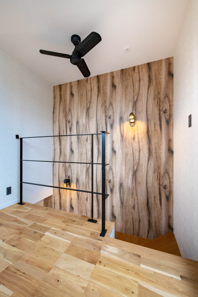 特に階段の手すりや照明器具、小物などの金属部分をマット調のブラックで統一すると、全体のバランスが整い、デザイン性がぐっと高まります。
