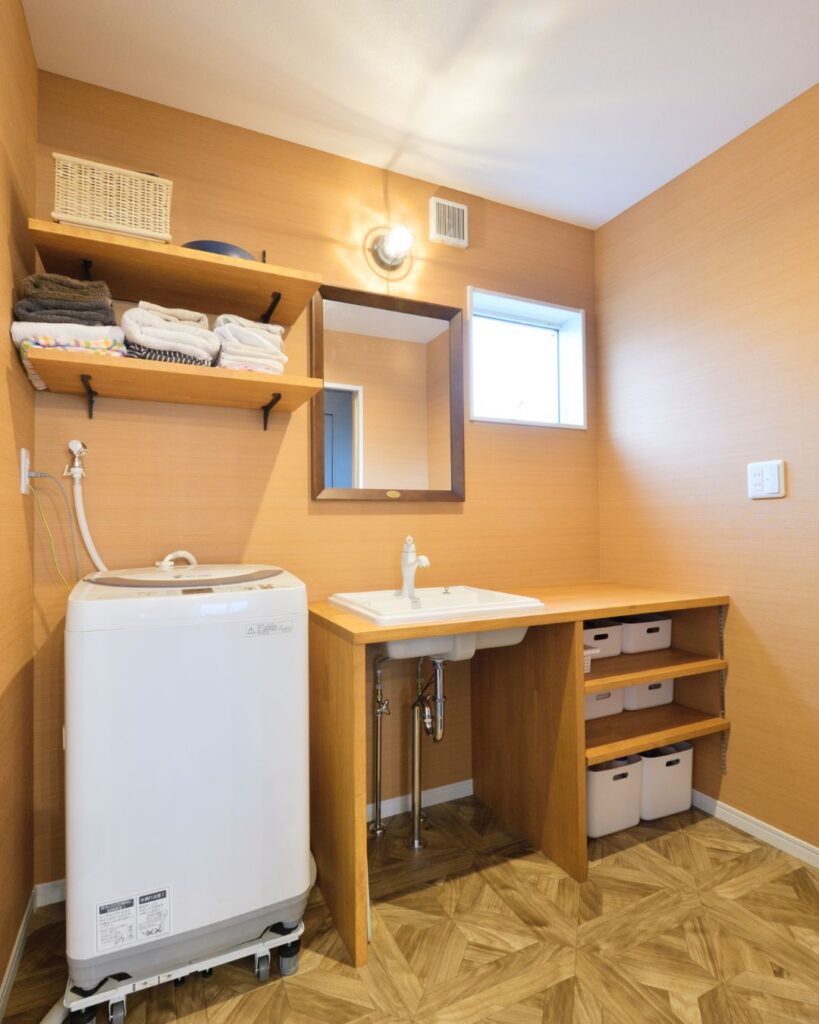 洗面室とランドリールームを一体化させるレイアウトにも適しており、家事動線を意識した間取りづくりにも取り入れやすい仕様です。
